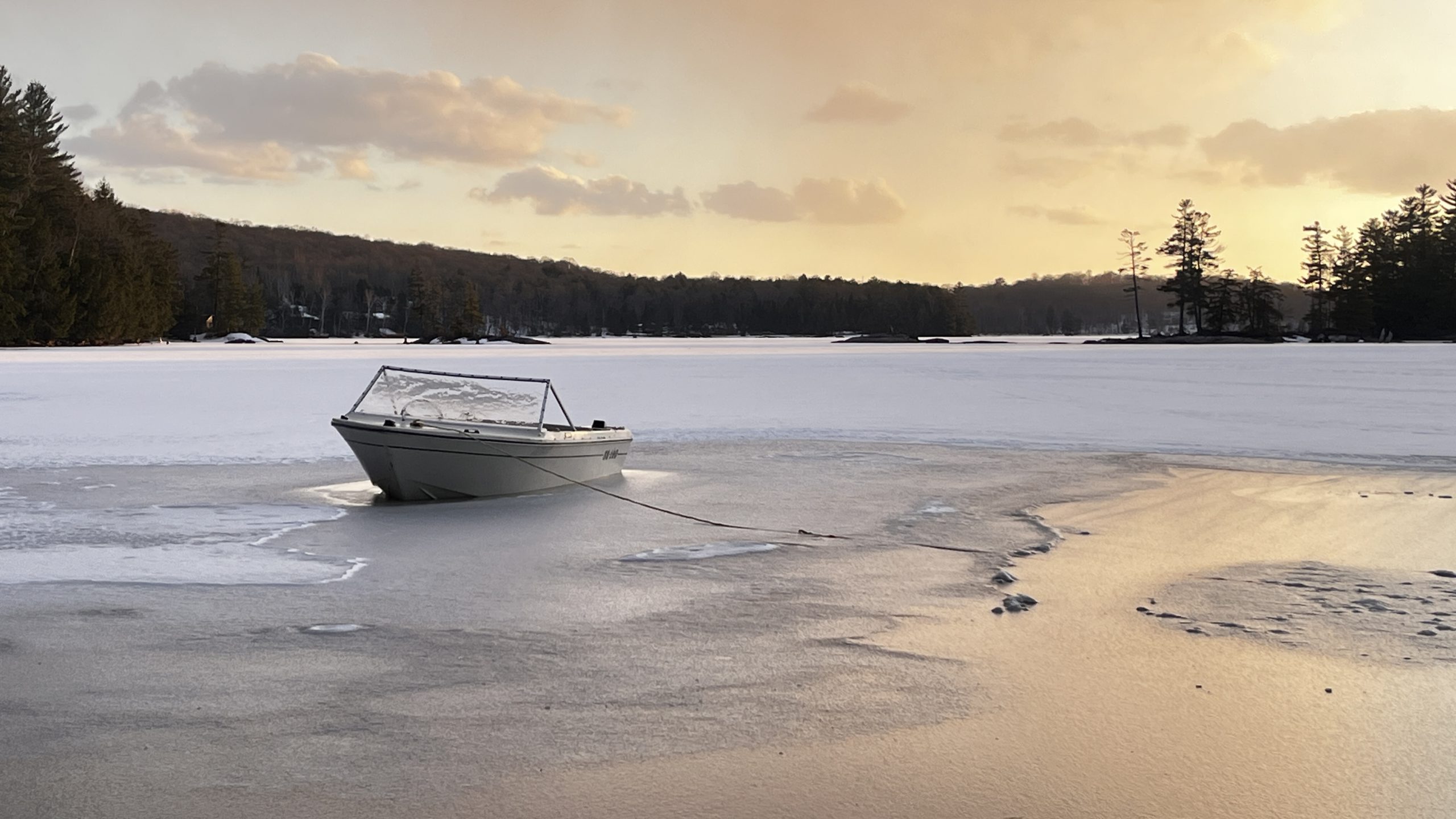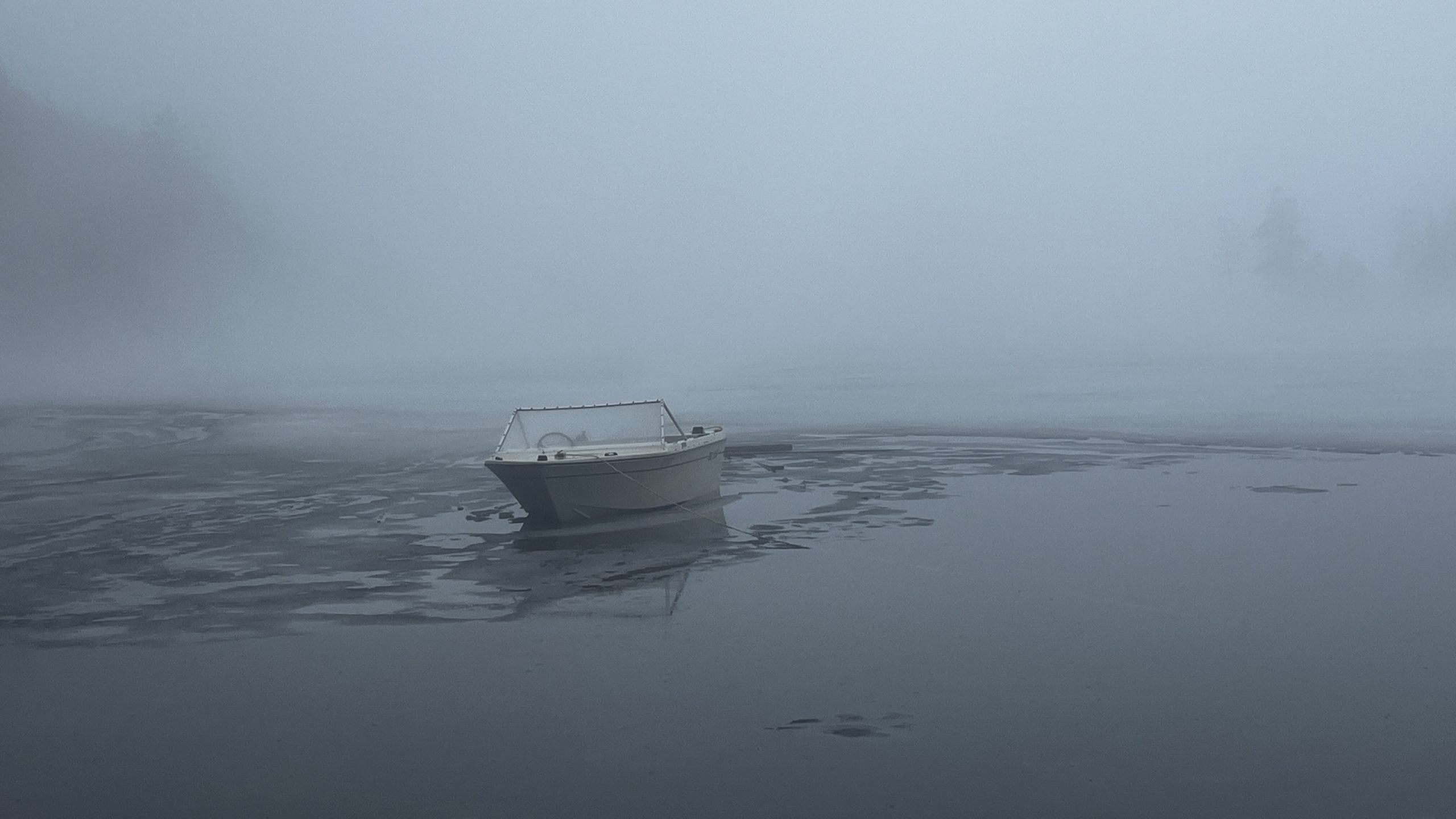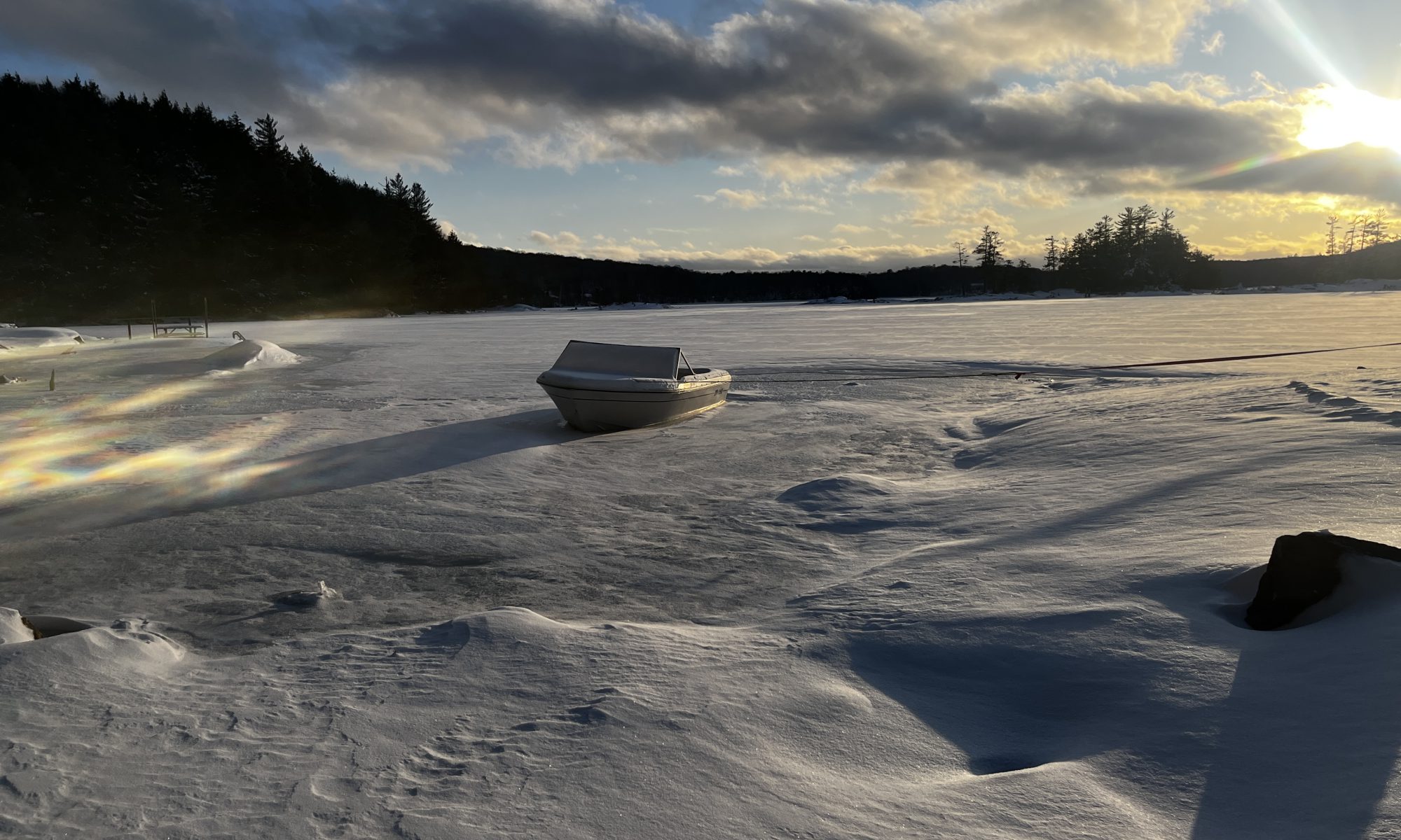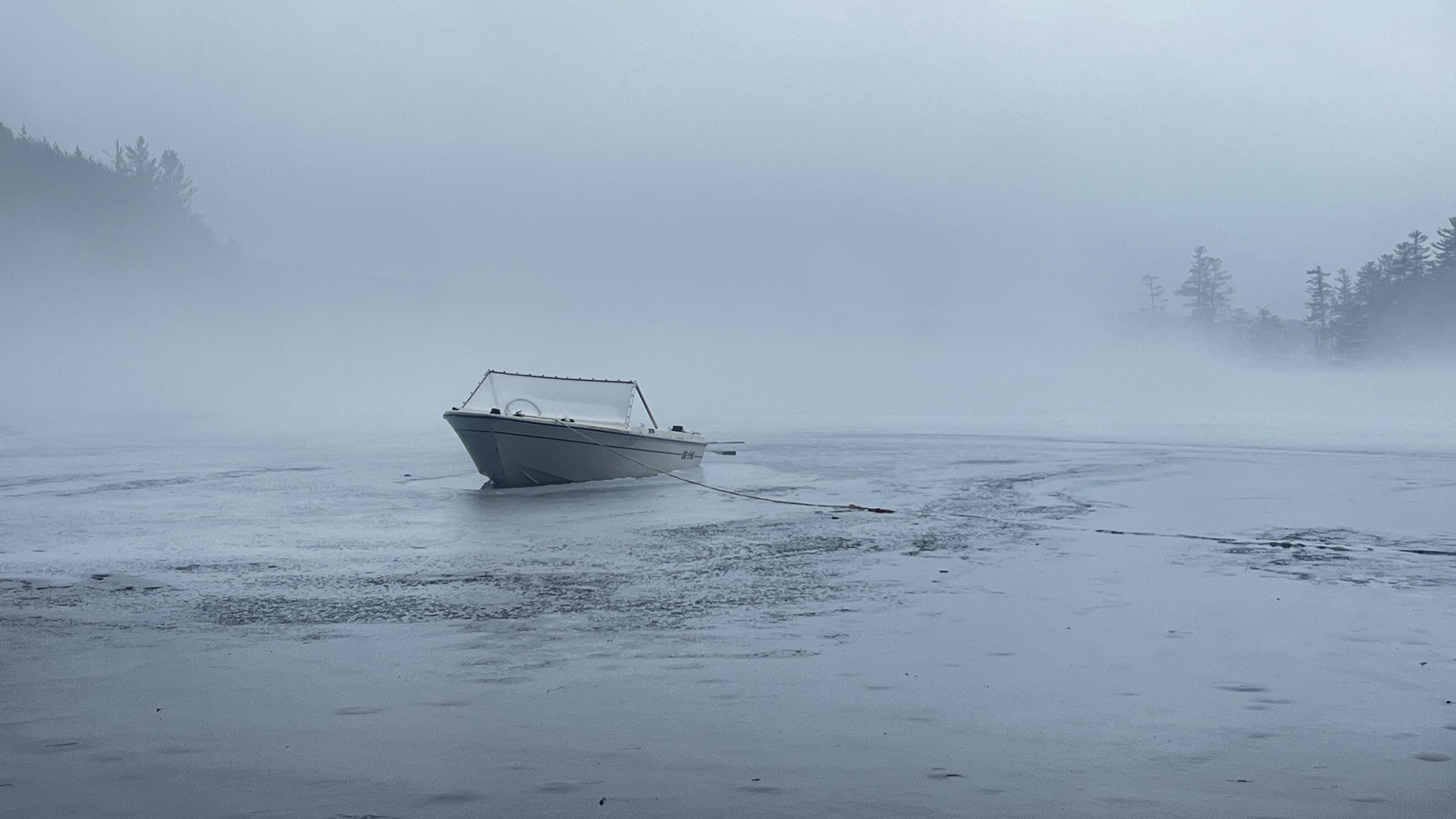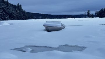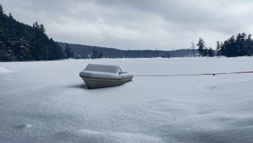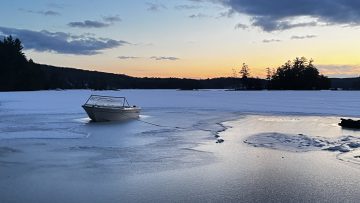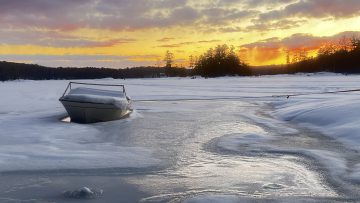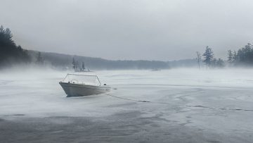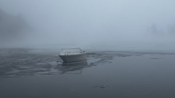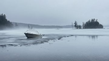 This photo series is a documentation of a site specific installation. This boat was left in the lake to be frozen in for the winter. The boat as vessel representing the individual stuck in the moment and keenly awaiting the unfrozen waters of spring.