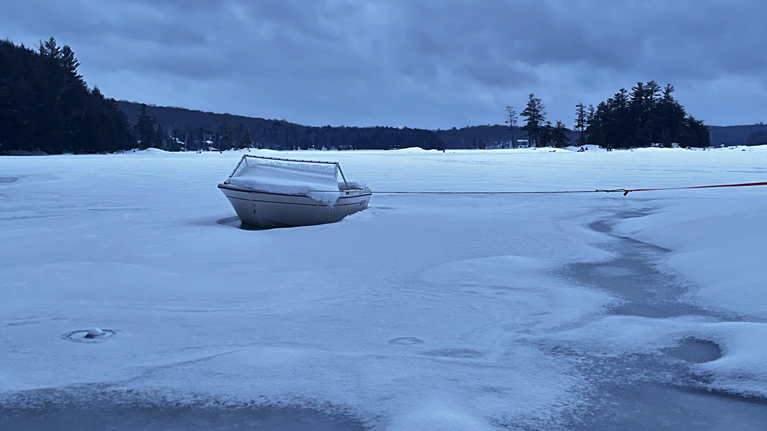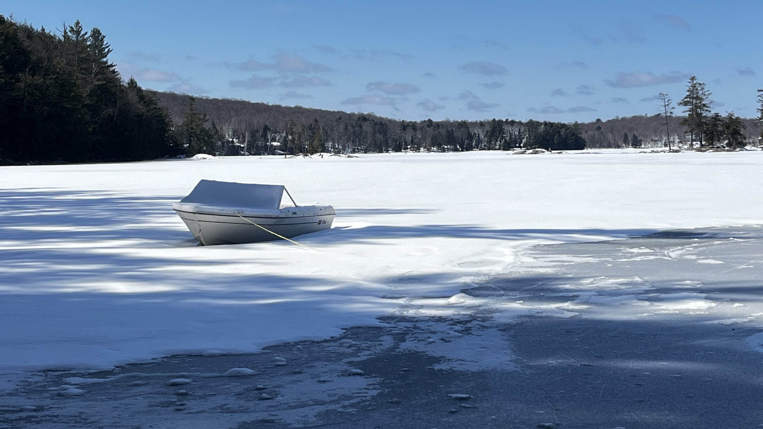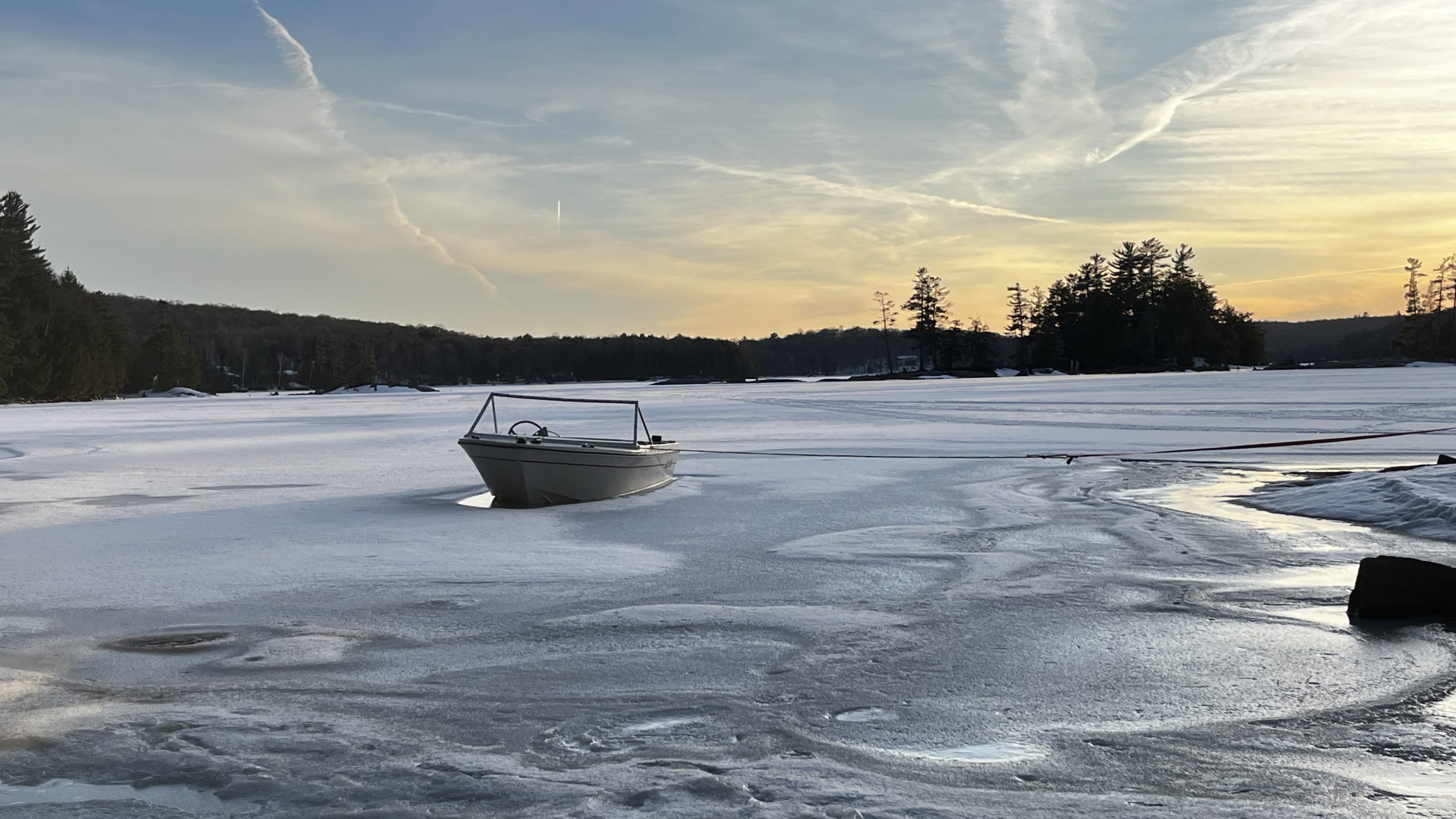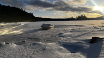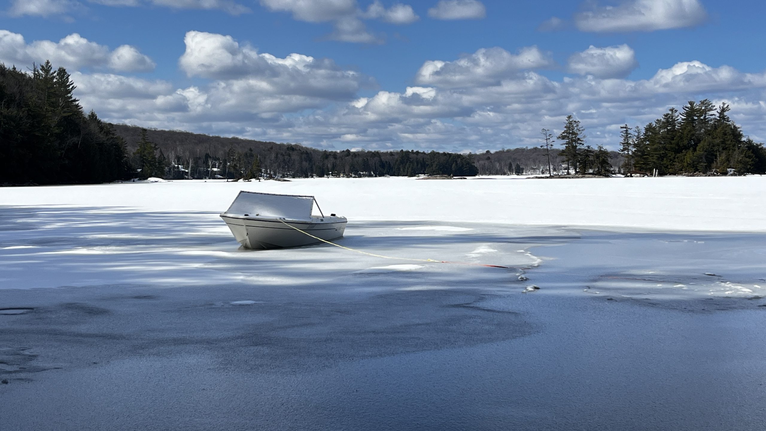 This photo series is a documentation of a site specific installation. This boat was left in the lake to be frozen in for the winter. The boat as vessel representing the individual stuck in the moment and keenly awaiting the unfrozen waters of spring.