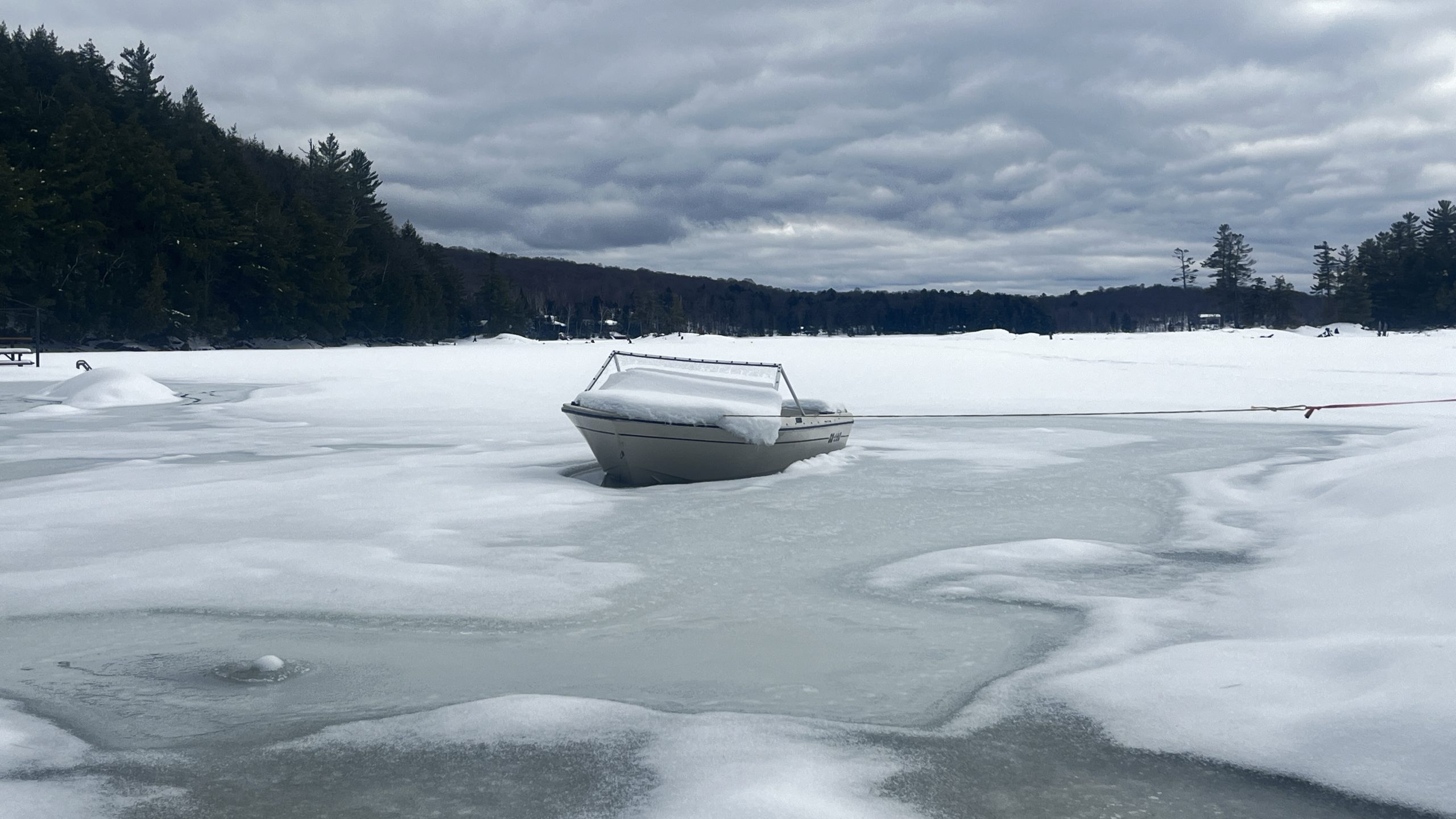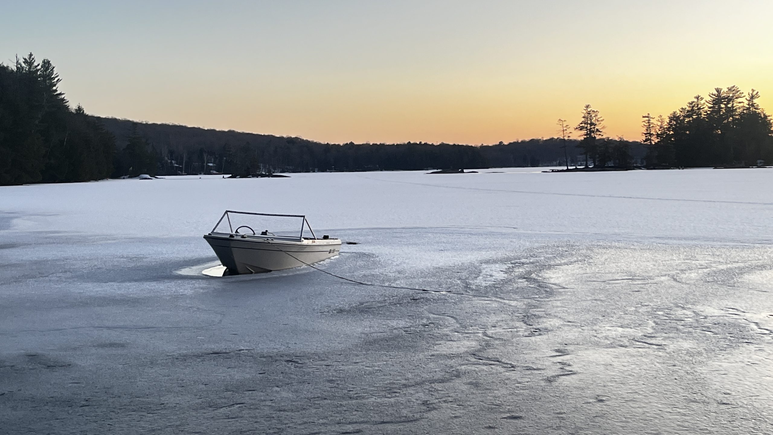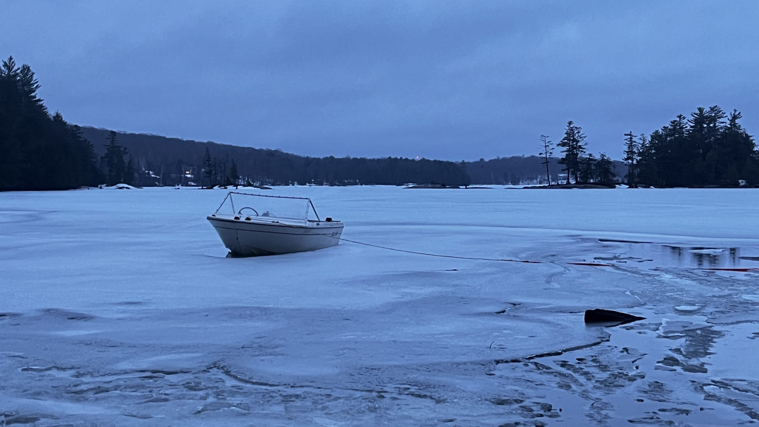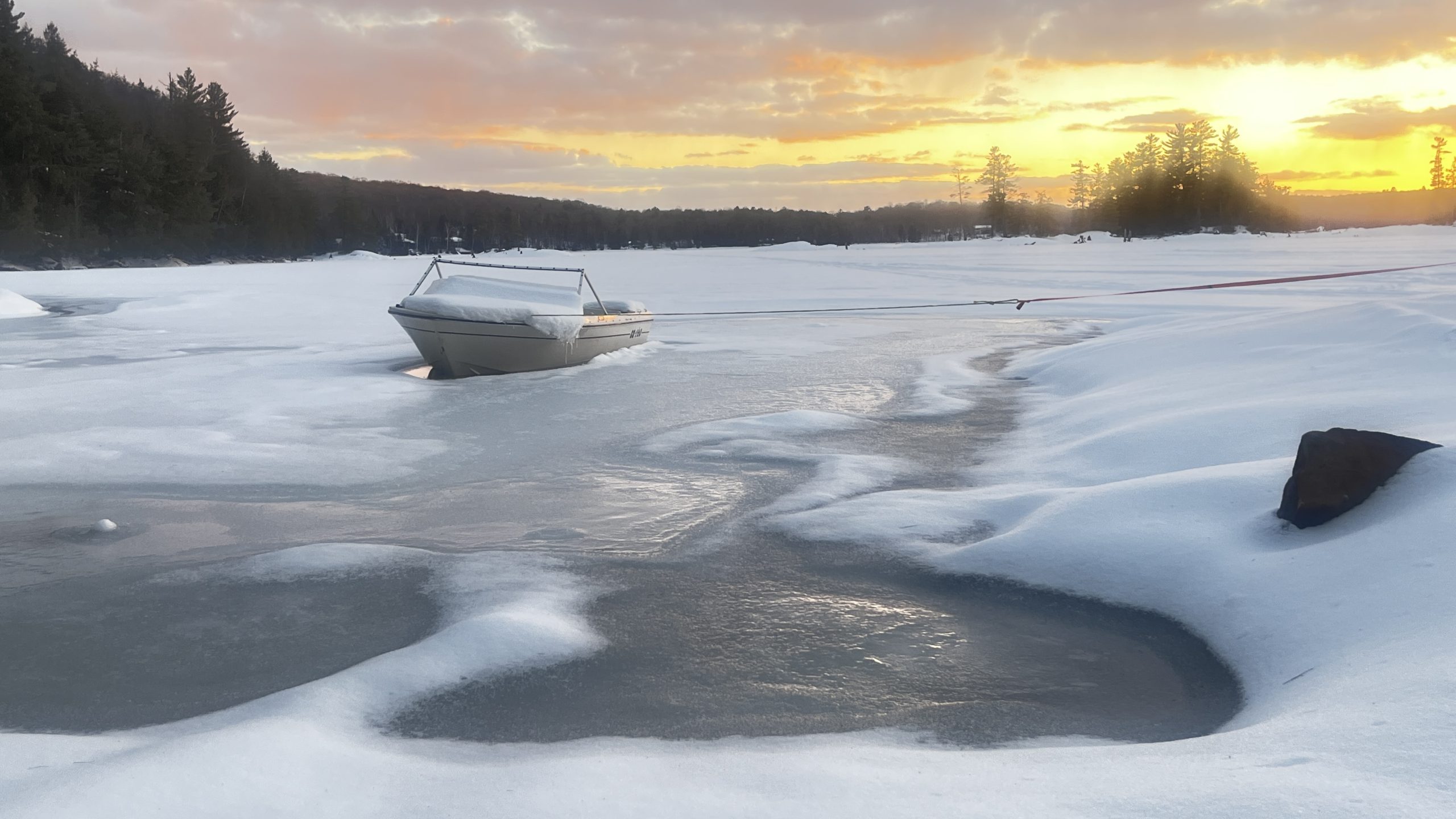 This photo series is a documentation of a site specific installation. This boat was left in the lake to be frozen in for the winter. The boat as vessel representing the individual stuck in the moment and keenly awaiting the unfrozen waters of spring.